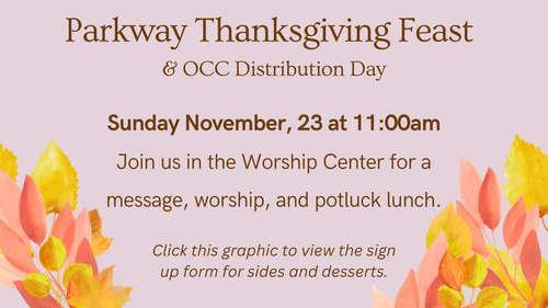 Parkway Baptist Church is a family where people can meet Jesus, engage in a life-giving community, and commit to working together for the renewal of the world. We believe in creating a space where people can have authentic encounters with Christ, discover their gifts, and use them for God's glory.